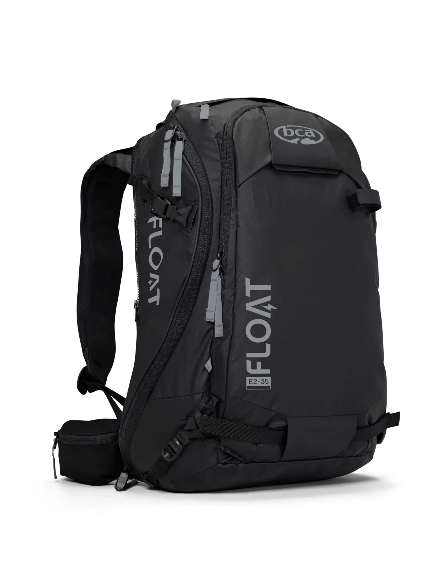 The Float E2-35 is our full-fledged 35L Float E2 airbag pack for all snowsports, featuring our waterproof coated nylon, Side Stash pocket, Back Stash zip, curved side access zip, removable ski/snowboard/compression straps, hip belt pocket, “cooling fin” back panel ventilation, and dedicated safety tools pocket.