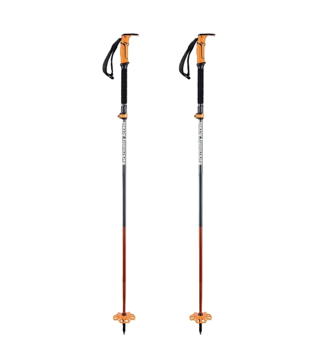 The BCA Scepter 4S Folding Poles have a soft EVA grip and choke up sleeve. They provide maximum comfort and grip with thin or no gloves. The Folding mechanism allows the BCA Scepter 4S Folding Poles to collapse and easily store on or in packs. Basket allows folded shafts to nest and secure together for the tightest controlled packing solution. Â